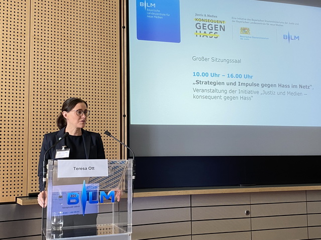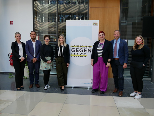 Hasskommentare im Netz nicht nur zu löschen, sondern sie auch strafrechtlich zu verfolgen, ist das Ziel der Initiative „Justiz & Medien – konsequent gegen Hass“. Die aktuelle Bilanz: knapp 1.000 Prüfbitten, mehr als 800 Ermittlungsverfahren und 90 Prozent Aufklärungsquote. Unterstützende der gemeinsamen Initiative vom bayerischen Justizministerium und der Bayerischen Landeszentrale für neue Medien (BLM) waren am 11.10.2023 in der BLM zu einem fachlichen Austausch zu Gast.