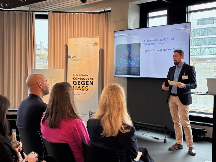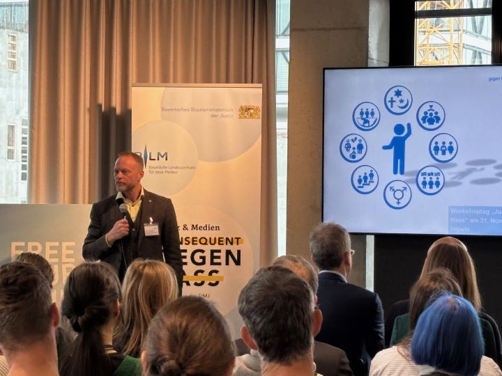 Die Bayerische Landeszentrale für neue Medien (BLM) organisierte im Rahmen der Initiative „Justiz und Medien – konsequent gegen Hass“ erneut einen Workshoptag für die Unterstützenden der Initiative. Diese jährliche Veranstaltung richtet sich an die Unterstützenden der Initiative und bietet Raum für Austausch und Vernetzung und fachliche Vertiefung. Im Mittelpunkt standen diesmal Entwicklungen rund um Künstliche Intelligenz, digitale Gewalt und Hassrede im Gaming-Bereich.